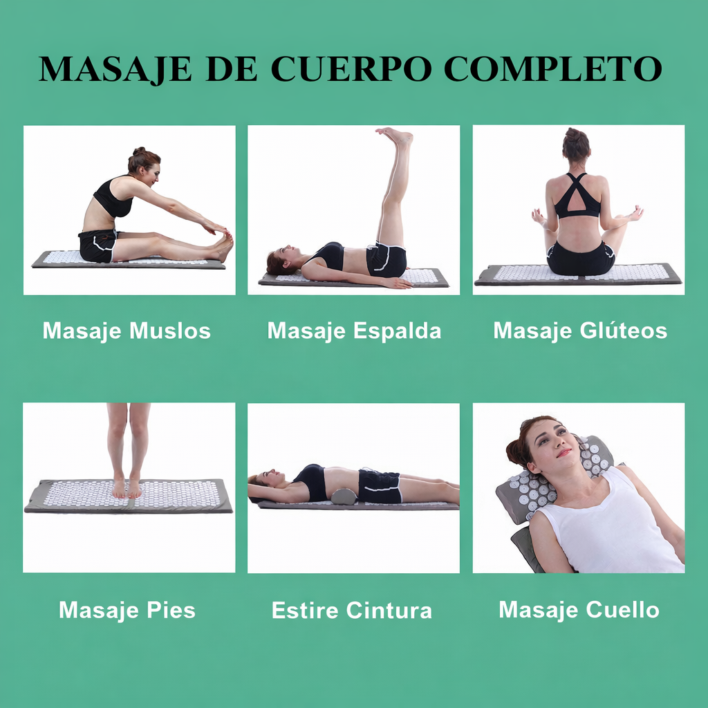 El set ofrece una forma simple de recuperación en casa, usando miles de puntos de presión para relajar músculos y mejorar la circulación después del entrenamiento.