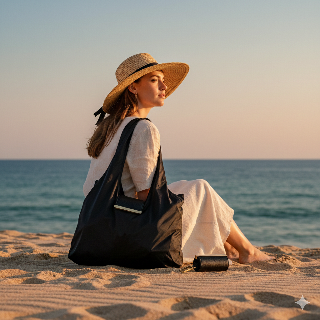 Con KeyBag™ | Bolsa Plegable, ese problema desaparece: siempre tienes una bolsa contigo, sin cargar un bolso extra.